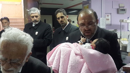 همرمان با ولادت باسعادت عالم آل محمد علی ابن موسی الرضا (ع) مراسم اهداء تبرکی به بیماران و ادای اذان و اقامه در گوش نوزادان تازه متولد شده توسط خادمین حرم مطهر رضوی در تاریخ 24 مرداد 1395 انجام پذیرفت. |