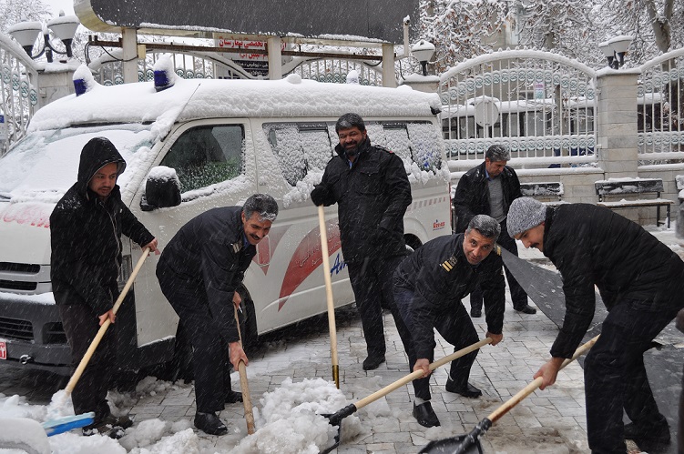 مشارکت مدیریت و همکاران انتظامات، کارپردازی، داروخانه، رانندگان و خدمات در برف روبی محوطه و ورودی های بیمارستان 22 دی ماه 1398 |